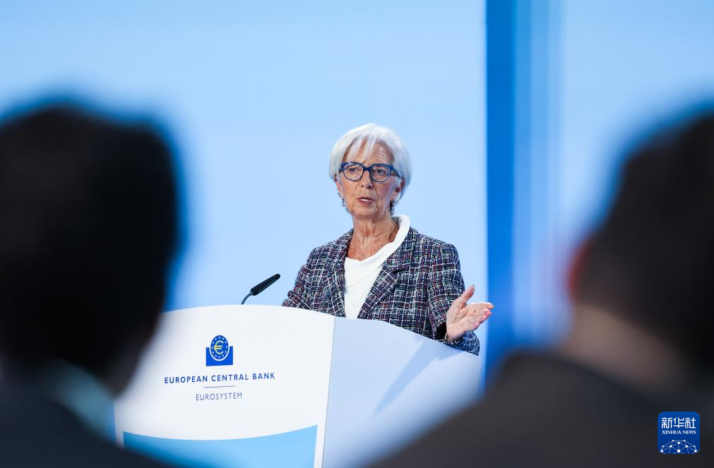 7月18日,歐洲中央銀行行長(zhǎng)拉加德在德國(guó)法蘭克福歐洲中央銀行總部舉行的新聞發(fā)布會(huì)上講話。新華社記者 張帆 攝