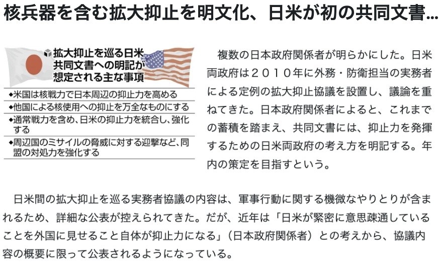 據(jù)多家外媒報道,日本和美國將于本月28日在東京舉行兩國外交部長和國防部長“2+2”會談,首次討論“延伸威懾”,即美國承諾使用包括核武器在內(nèi)的軍事力量保護盟國的問題。