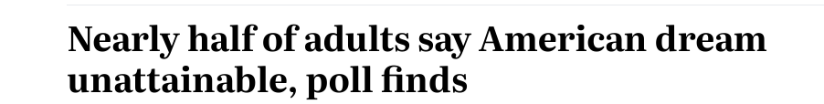 位于哥倫比亞特區(qū)的公共政策中心阿奇布里奇研究所(Archbridge Institute)在2023年7月的一份調(diào)查報告中稱,接受調(diào)查的24%的成年人表示,美國夢對他們來說“遙不可及”,這一比例高于2022年的18%。