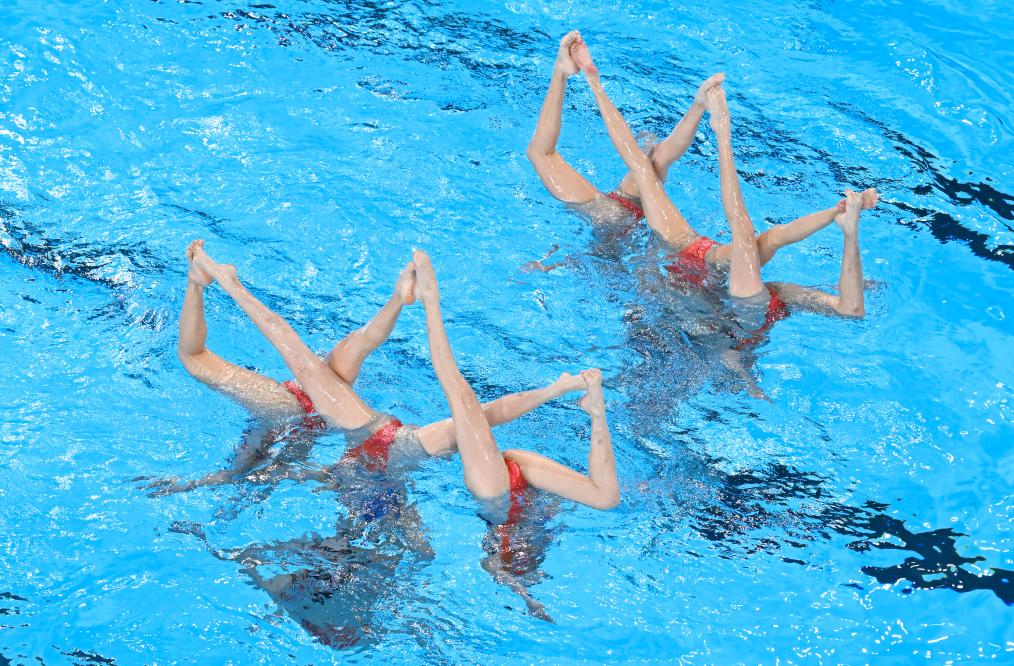 8月7日,中國花樣游泳隊在比賽中。新華社記者 夏一方 攝