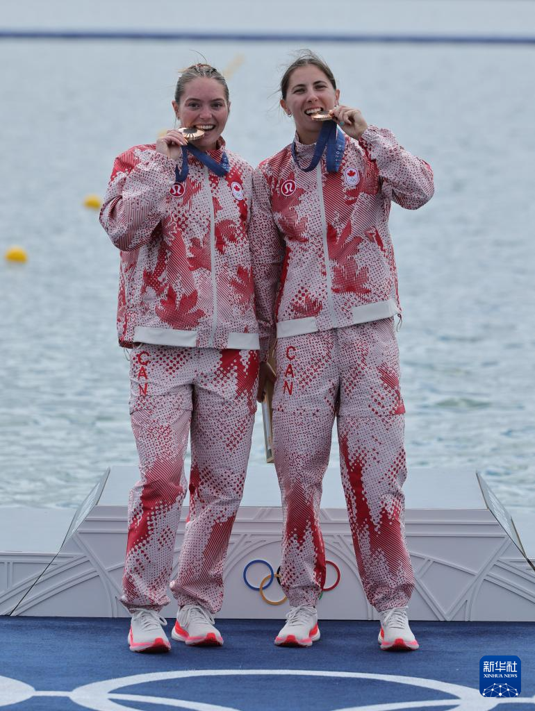 8月9日,季軍加拿大組合斯隆·麥肯齊(左)/凱蒂·文森特在頒獎(jiǎng)儀式上。新華社記者 沈伯韓 攝