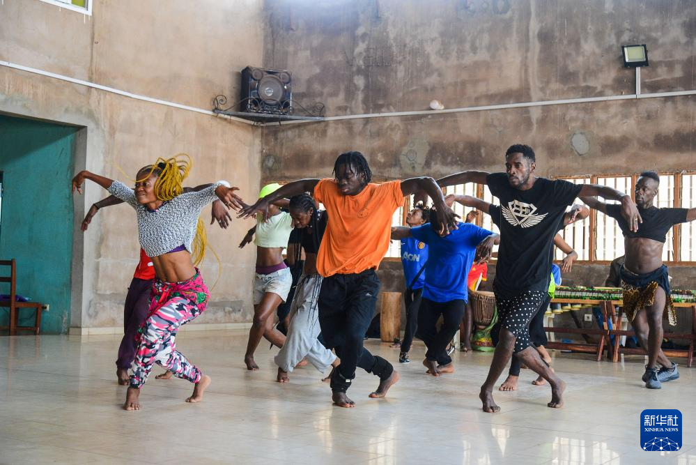 在喀麥隆首都雅溫得市郊一間舞蹈練習(xí)室內(nèi),一群年輕的非洲演員正身著當(dāng)?shù)胤b、頭戴面具,伴隨著傳統(tǒng)樂器的節(jié)奏赤腳舞蹈。