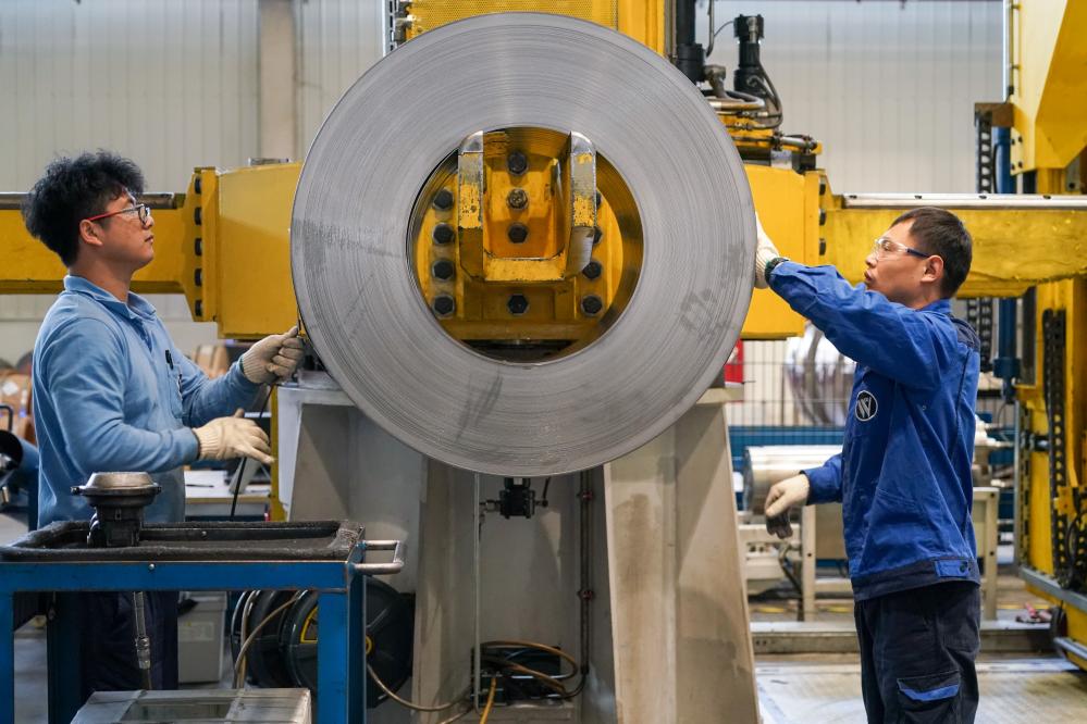 2023年3月16日,工人在位于太倉(cāng)市高新區(qū)的威爾斯新材料(太倉(cāng))有限公司生產(chǎn)車(chē)間內(nèi)進(jìn)行加工作業(yè)。新華社記者李博攝