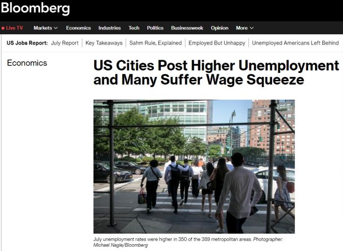 據(jù)報(bào)道,與2023年同期相比,389個(gè)大都會(huì)區(qū)中有350個(gè)的失業(yè)率在7月上升。在包括密爾沃基、明尼阿波利斯-圣保羅和舊金山等2010年普查人口數(shù)達(dá)到或超過(guò)100萬(wàn)的八個(gè)大都會(huì)區(qū),2024年7月的就業(yè)人數(shù)低于2019年7月同期。