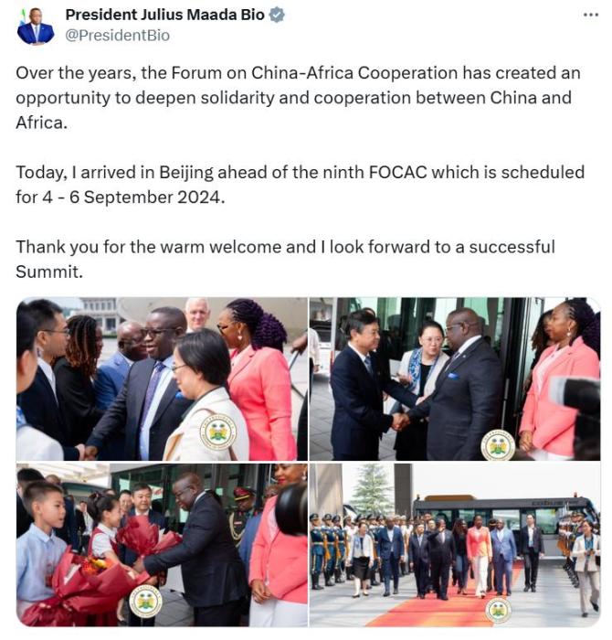 圖片來源:塞拉利昂總統(tǒng)比奧社交媒體賬號截圖