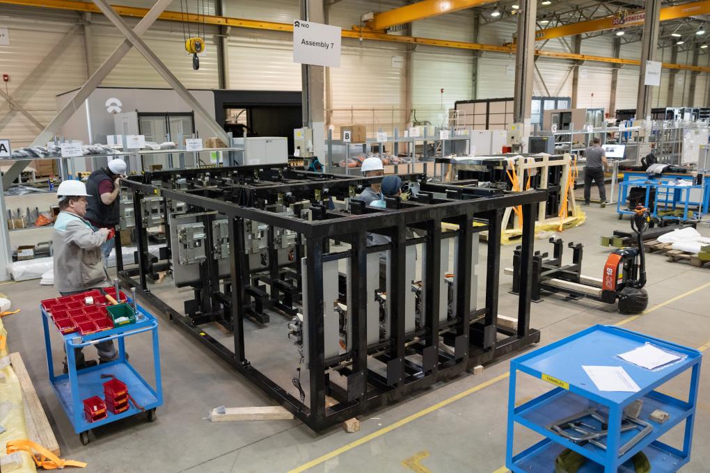 1月26日,在匈牙利比奧托爾巴吉,員工在蔚來能源歐洲工廠工作。新華社發(fā)(弗爾季·奧蒂洛攝)
