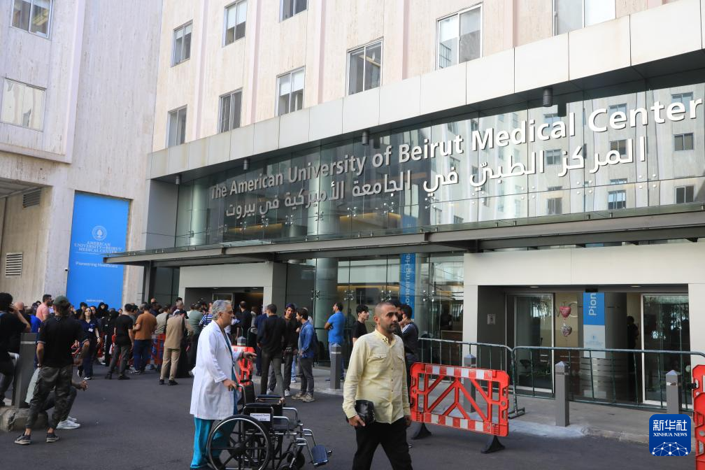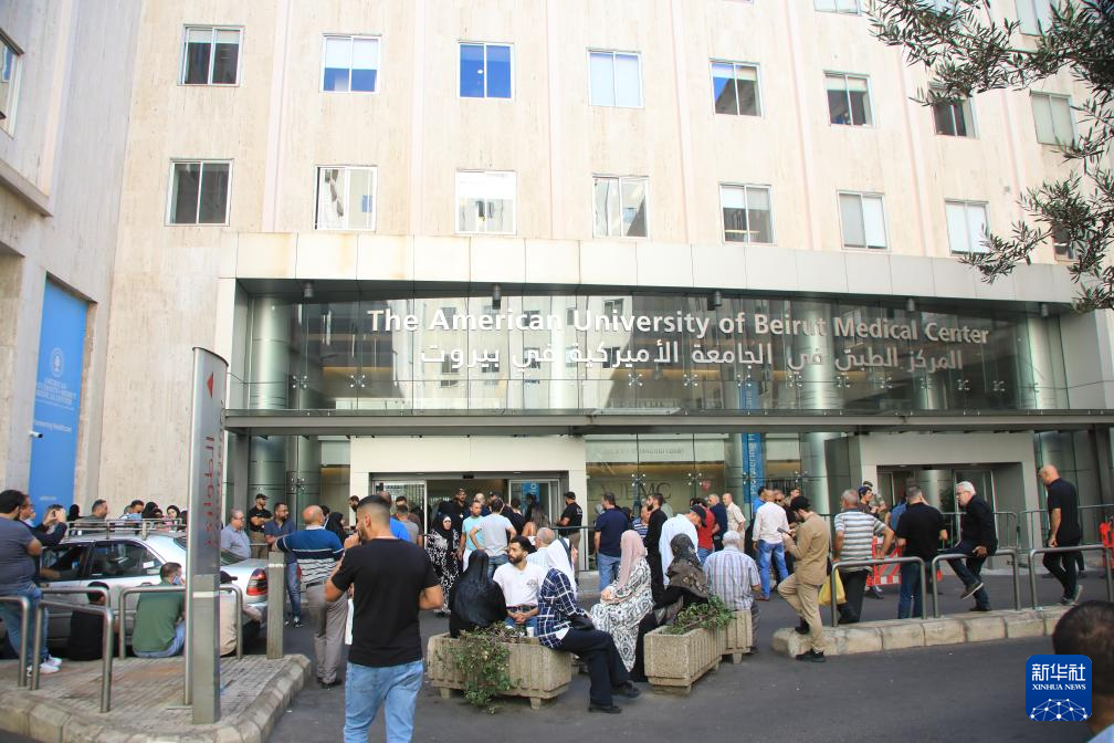 9月20日,在黎巴嫩首都貝魯特,人們聚集在貝魯特美國大學(xué)醫(yī)療中心門口。新華社記者 程帥朋 攝