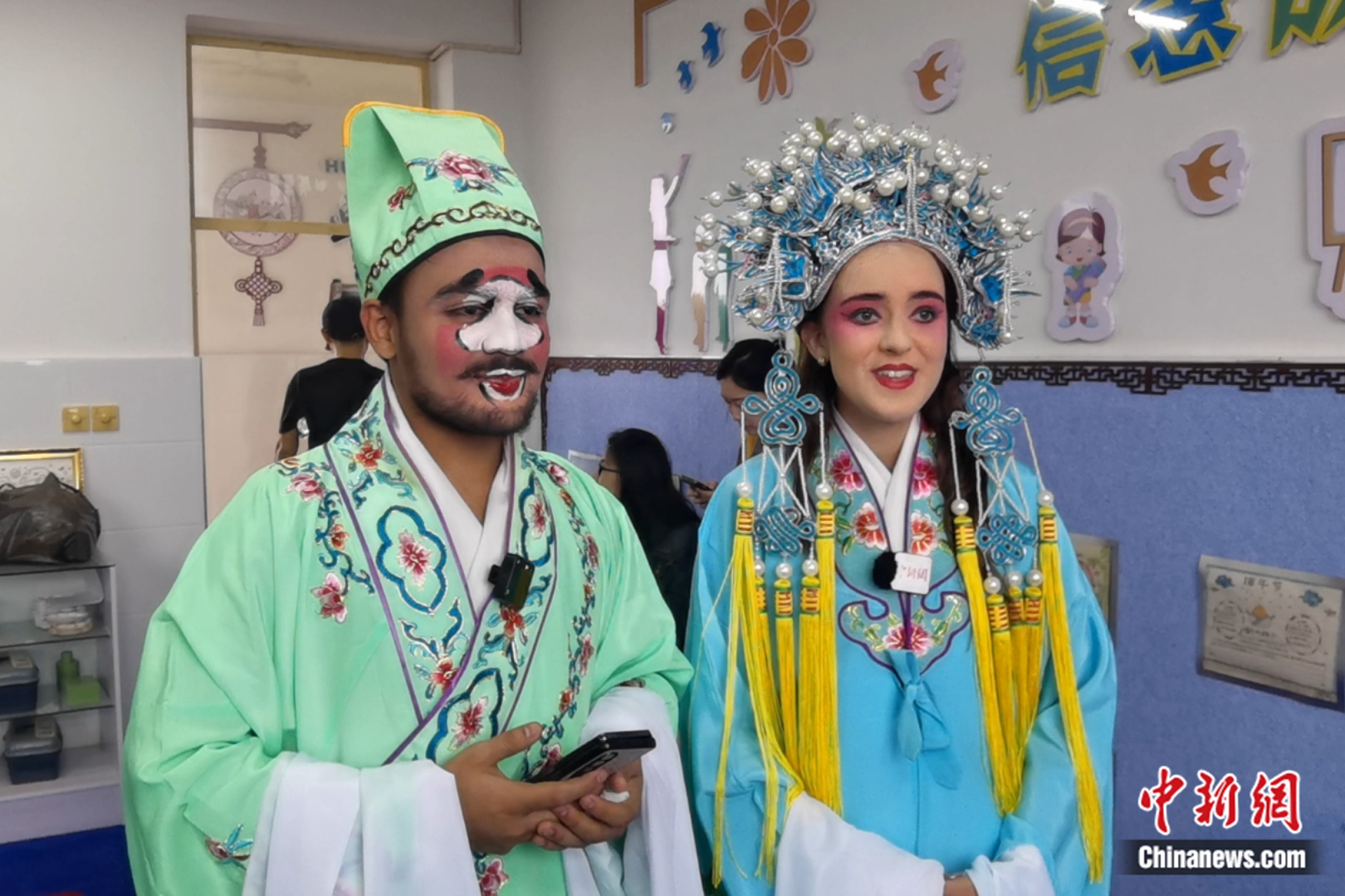 “洋弟子”換上戲服、化上戲裝。 黃鈺涵 攝