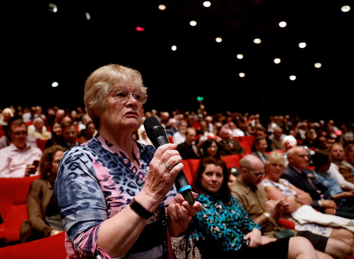 2023年8月15日,在英國倫敦,“里斯本丸”號幸存者丹尼斯·莫利之女丹妮絲·維尼在紀錄片《里斯本丸沉沒》放映活動上與主創(chuàng)人員交流。新華社記者 李穎 攝