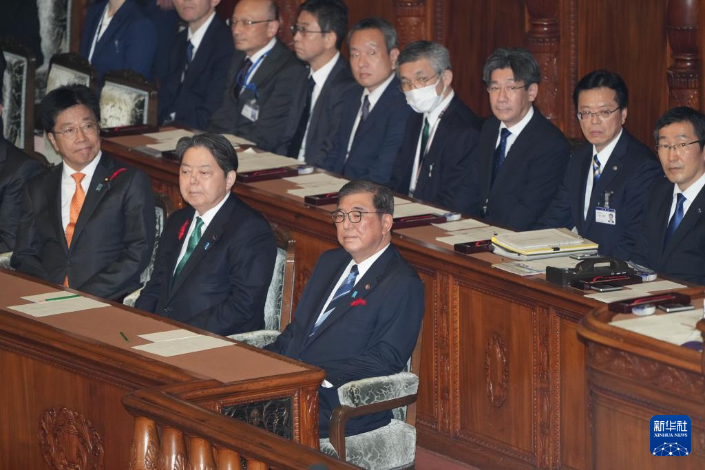 10月9日,日本首相石破茂(前排右)出席在首都東京舉行的眾議院全體會議。新華社記者 張笑宇 攝