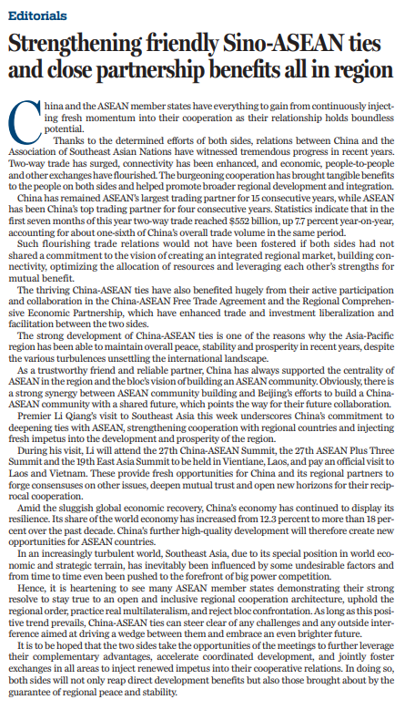 原文標題:Strengthening friendly Sino-ASEAN ties and close partnership benefits all in region