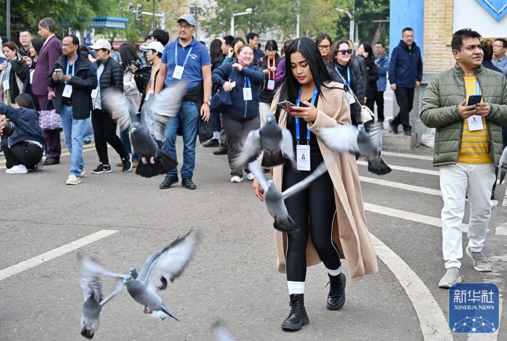 10月15日,與會嘉賓在伊寧市喀贊其民俗旅游區(qū)參訪。 新華社記者 李響 攝