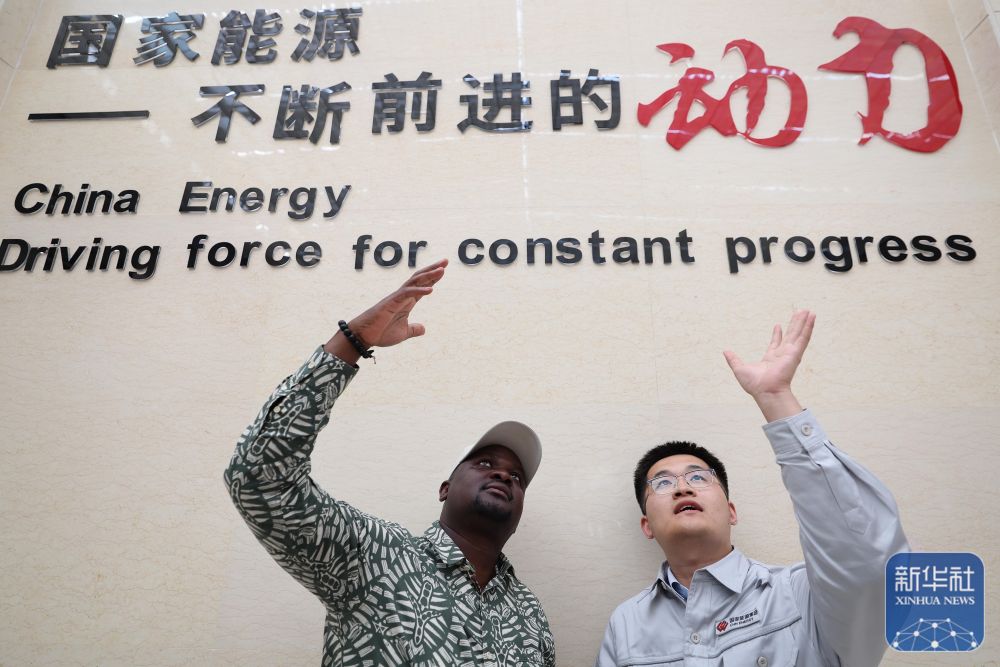 10月15日,與會嘉賓在國家能源集團龍源吐魯番新能源有限公司參訪時與工作人員交流。 新華社記者 李明 攝