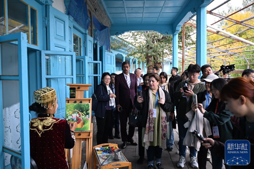 10月15日,與會嘉賓在伊寧市喀贊其民俗旅游區(qū)參訪。 新華社記者 劉續(xù) 攝
