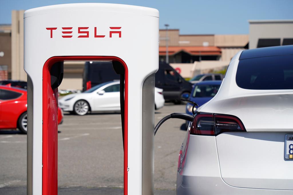 這是4月2日在美國(guó)加州圣布魯諾一處停車場(chǎng)拍攝的特斯拉汽車。新華社發(fā)(李建國(guó)攝)