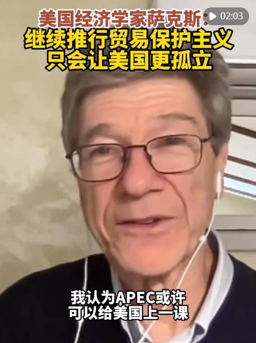 薩克斯表示,美國應(yīng)停止破壞性的貿(mào)易政策。美國慫恿其他國家停止與中國經(jīng)貿(mào)往來,但很多國家并不跟風(fēng)。繼續(xù)推行貿(mào)易保護(hù)主義只會讓美國更孤立。(記者:鄭開君、熊茂伶、胡友松;視頻:鄭開君、刁慧琳)
