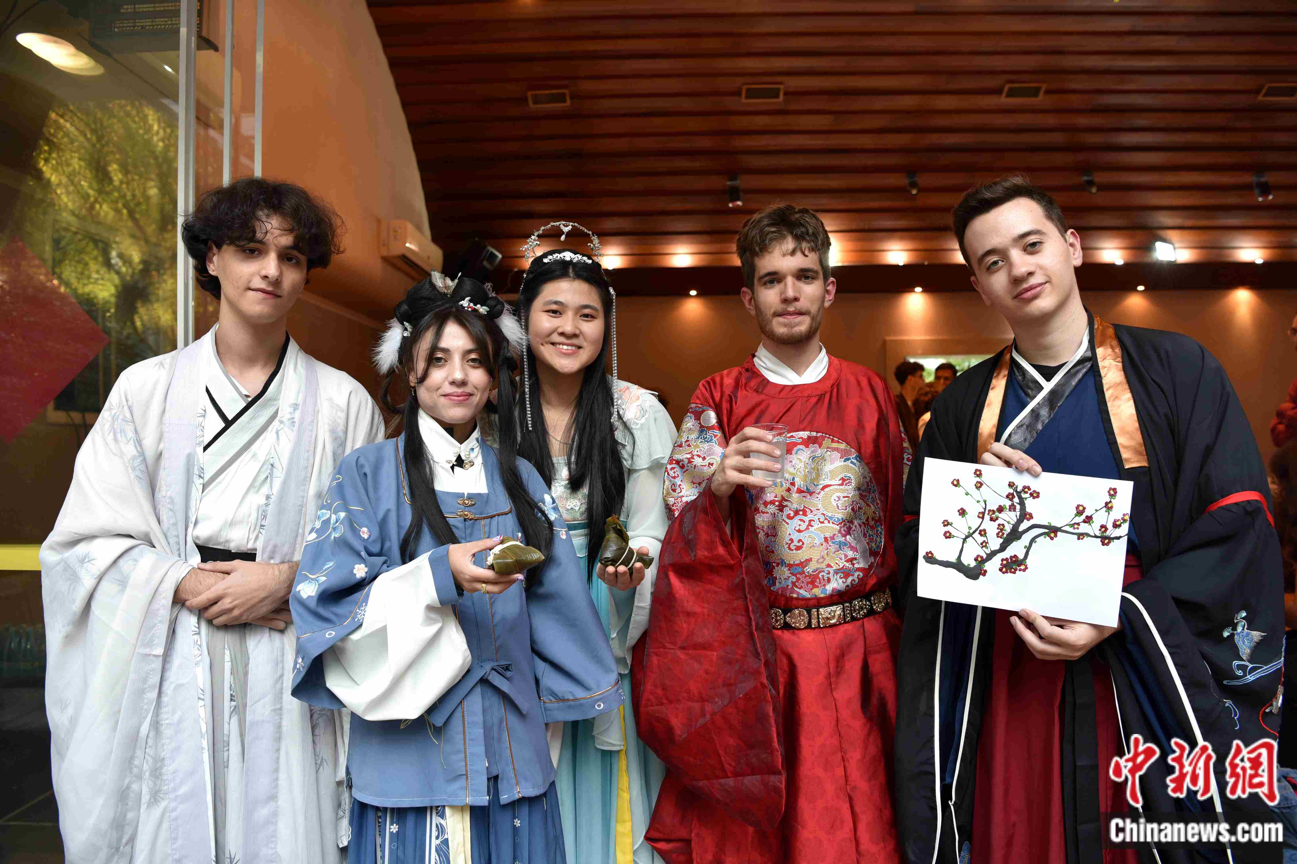 資料圖:中國駐圣保羅總領(lǐng)館舉行端午開放日,圣保羅州立大學孔子學院40余位學子共慶端午。巴西青年學子們穿上漢服,誦讀中國古詩詞,包粽子,沉浸式體驗中國端午習俗。 中新社記者 林春茵 攝