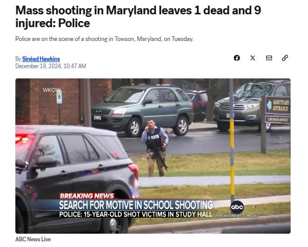 中新網(wǎng)12月18日電 據(jù)美國(guó)廣播公司(ABC)報(bào)道,當(dāng)?shù)貢r(shí)間17日,警方稱,美國(guó)馬里蘭州巴爾的摩發(fā)生大規(guī)模槍擊事件,造成1人死亡,9人受傷。