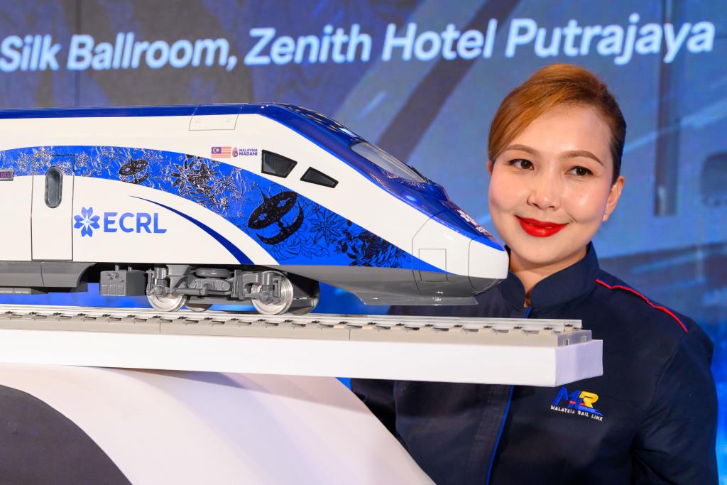12月18日,在馬來(lái)西亞普特拉賈亞,模特與新的動(dòng)車(chē)組模型合影。新華社發(fā)(張紋綜攝)