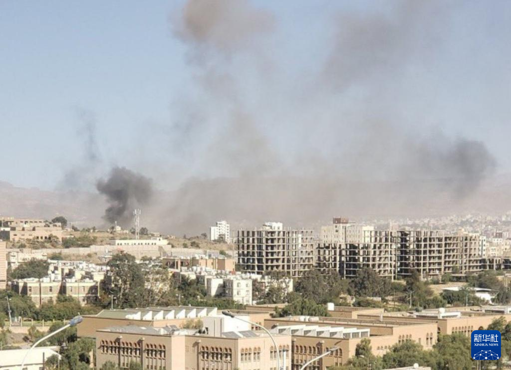 2024年12月31日,也門薩那市中心一處軍事基地遭到空襲后冒出濃煙(手機照片)。新華社發(fā)