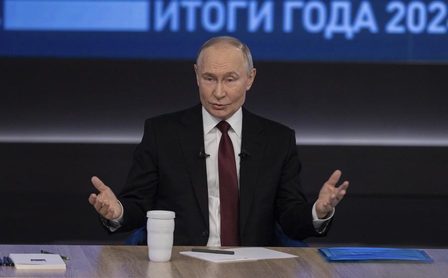 2024年12月19日,在俄羅斯首都莫斯科,俄羅斯總統(tǒng)普京在“年度盤(pán)點(diǎn)”活動(dòng)上講話。新華社記者白雪騏攝