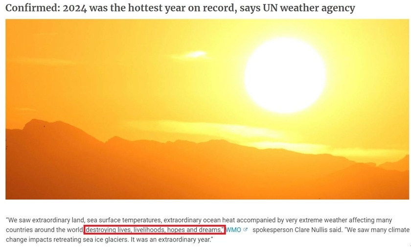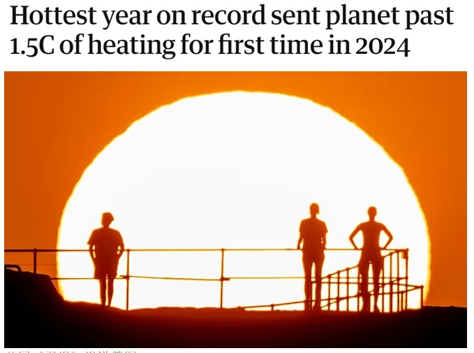 根據(jù)該組織對(duì)多份國際數(shù)據(jù)的綜合分析,2024年全球平均氣溫比工業(yè)化前平均水平高出約1.55攝氏度,是首個(gè)該差額超過1.5攝氏度的年份。