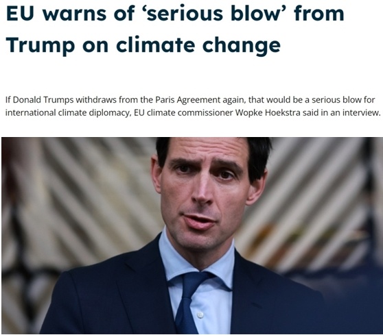 歐盟委員會(huì)負(fù)責(zé)氣候行動(dòng)的委員沃普克·胡克斯特拉日前警告,如果特朗普再次讓美國退出《巴黎協(xié)定》,全球?yàn)閼?yīng)對(duì)氣候變化所做的努力將受到嚴(yán)重打擊。