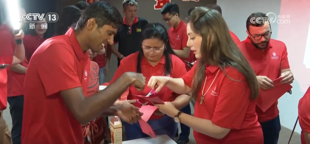 當(dāng)?shù)貢r(shí)間1月28日一大早,也就是北京時(shí)間的除夕夜,巴西東北部小鎮(zhèn)阿波迪打破了往日的平靜。很多當(dāng)?shù)孛癖娭?,他們的中?guó)朋友即將舉行春節(jié)慶?;顒?dòng),因而早早地來(lái)到了活動(dòng)現(xiàn)場(chǎng)。在現(xiàn)場(chǎng),中國(guó)農(nóng)業(yè)技術(shù)人員不僅貼上了春聯(lián)、掛上了福字,還邀請(qǐng)當(dāng)?shù)孛癖娨黄鹂创和?、包餃子、剪窗花、?xiě)春聯(lián),這也是很多當(dāng)?shù)孛癖姷谝淮螀⒓哟汗?jié)慶祝活動(dòng)。