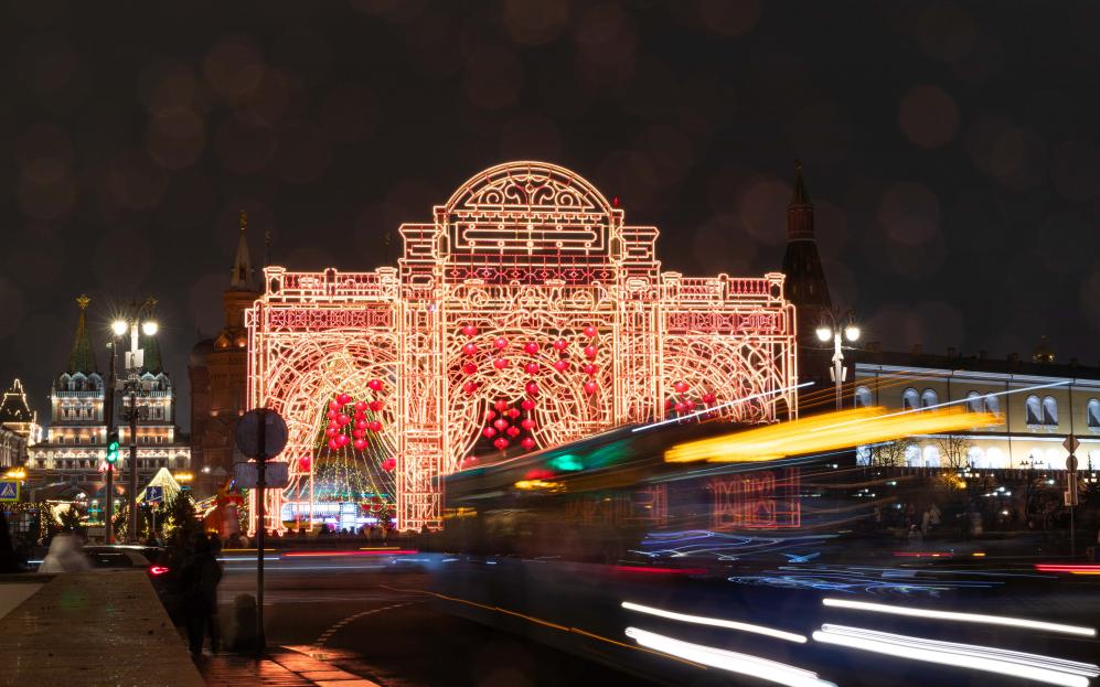 莫斯科春節(jié)慶祝活動(dòng)開幕恰逢除夕。在開幕式舉辦地——莫斯科市中心的馬涅什廣場(chǎng),節(jié)慶彩色串燈搭配成百上千的紅燈籠裝點(diǎn)一新;臨時(shí)搭建的房屋四周懸掛的“?!弊趾椭袊Y(jié),將“年味兒值”拉滿;美食攤位升騰起裊裊炊煙,飄出的香氣令人垂涎欲滴。