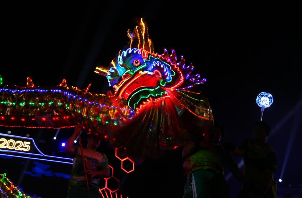 1月26日,演員在泰國那空沙旺湄南河畔舉行的春節(jié)慶?;顒由媳硌菸椠垺P氯A社記者孫瑋彤?dāng)z