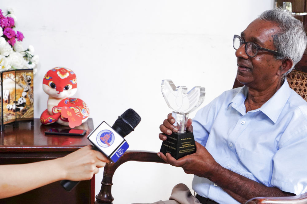 1月30日,在斯里蘭卡首都科倫坡,斯里蘭卡中國(guó)協(xié)會(huì)主席吉尼斯·德席爾瓦接受新華社記者采訪。