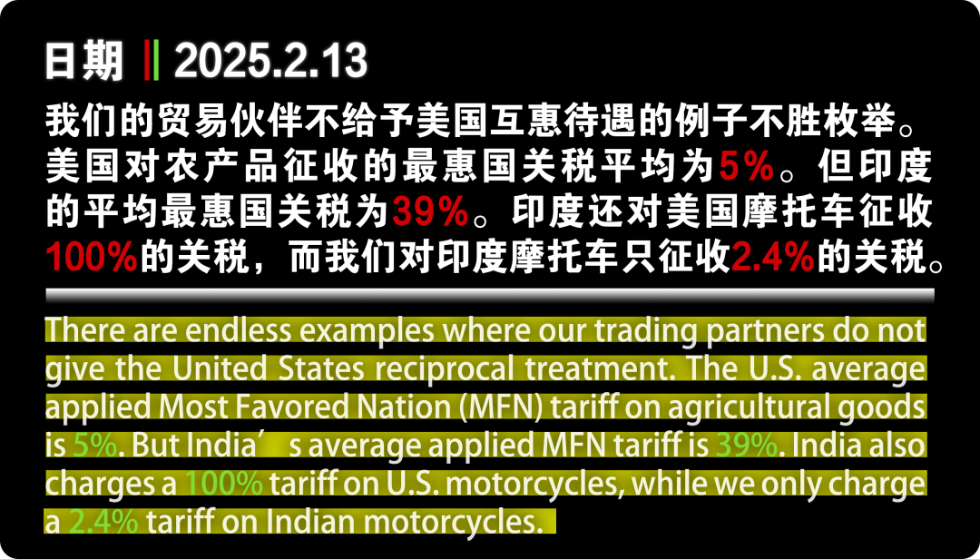 當?shù)貢r間2月13日,特朗普宣布了最新的關稅決定:在未來幾周或幾個月內(nèi)對其他國家加征“對等關稅”。這意味著,美國的貿(mào)易伙伴,全部面臨著新的關稅威脅。