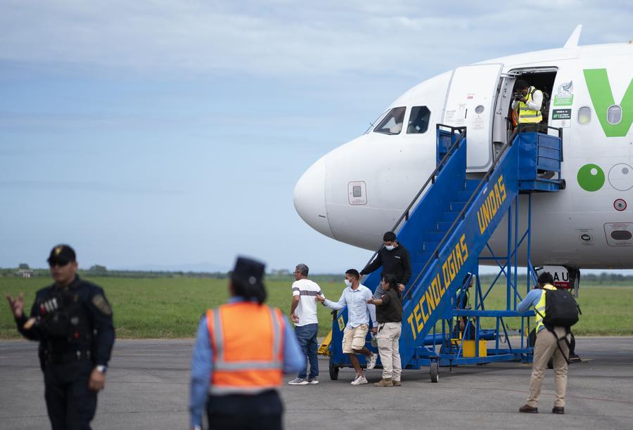 2025年2月13日,在洪都拉斯拉利馬市,被遣返移民抵達(dá)機場。新華社發(fā) 戴維 攝