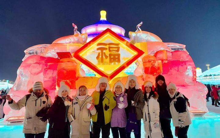 泰國、馬來西亞等熱帶國家游客則選擇去“冰城”哈爾濱嘗試溜冰、滑雪、打陀螺、看冰雕,盡情享受冰雪樂趣。
