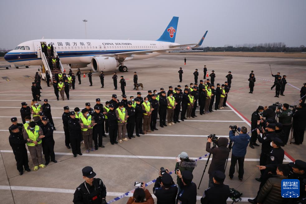 2月20日,隨著中國民航包機(jī)降落在江蘇南京祿口國際機(jī)場,緬甸妙瓦底地區(qū)的200名中國籍涉詐犯罪嫌疑人,經(jīng)泰國被我公安機(jī)關(guān)押解回國。此次行動是中緬泰開展執(zhí)法合作取得的標(biāo)志性重大戰(zhàn)果,彰顯三國聯(lián)合打擊電信網(wǎng)絡(luò)詐騙等跨國犯罪維護(hù)地區(qū)安全穩(wěn)定的堅定決心。新華社記者 殷剛 攝