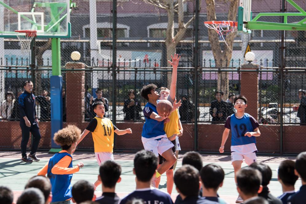 春日暖陽下,中美學生們交叉組隊,足球賽、籃球賽、乒乓球賽精彩紛呈,中英文歡呼吶喊聲交織在一起,把歡樂的氣氛推向高潮。