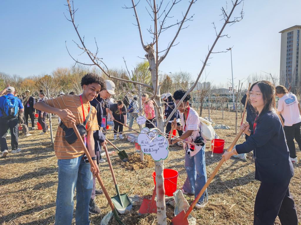 3月20日,春分,參訪的美國學生和中國同齡人,在河北省園博園的中美友誼傳承青年林,共植友誼樹。
