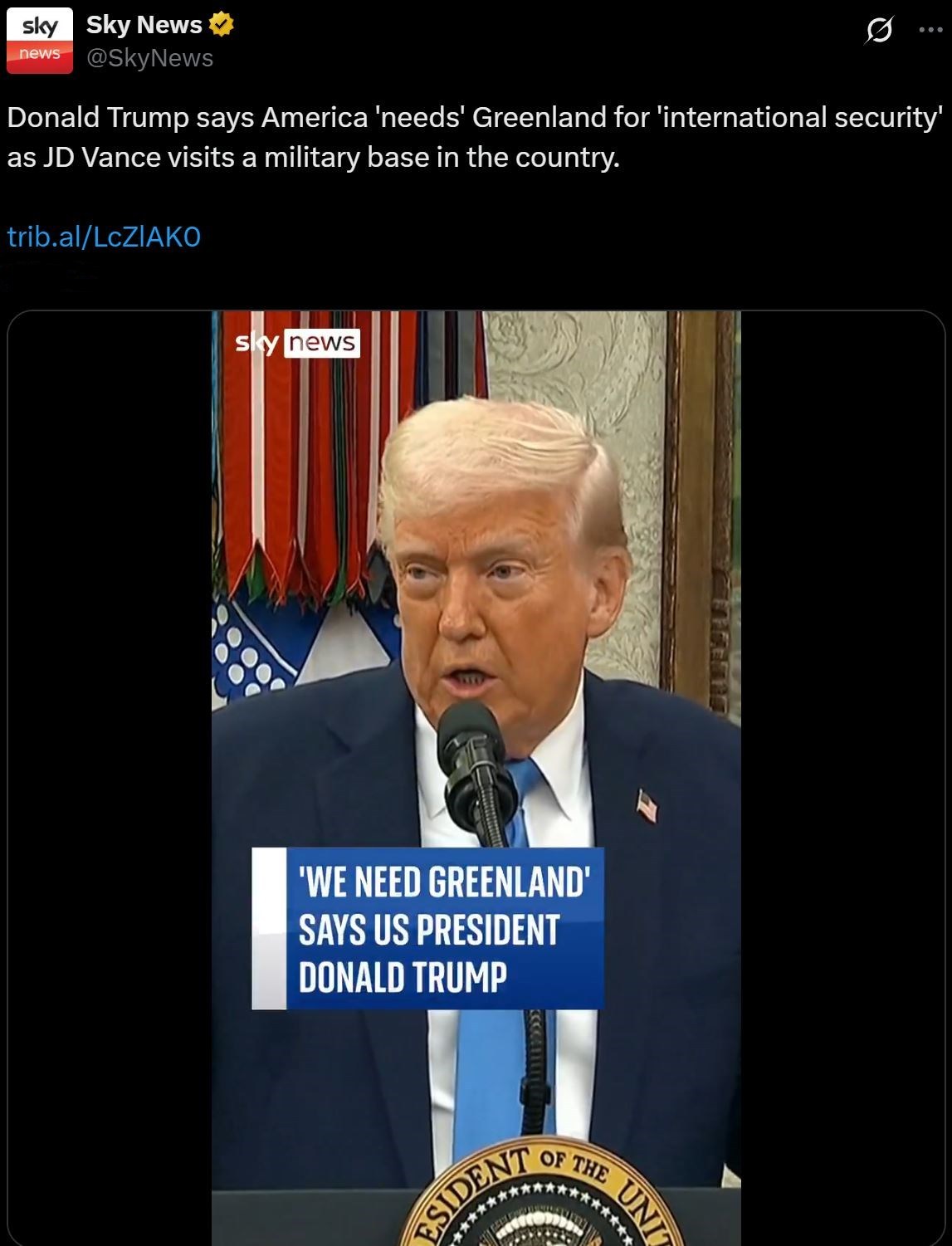 “格陵蘭島對(duì)于美國(guó)的安全至關(guān)重要,而它現(xiàn)在非常脆弱。如果格陵蘭島人民愿與美國(guó)合作,而且我也認(rèn)為他們最終會(huì)與美國(guó)合作,我們可以讓他們更安全?!?/p>