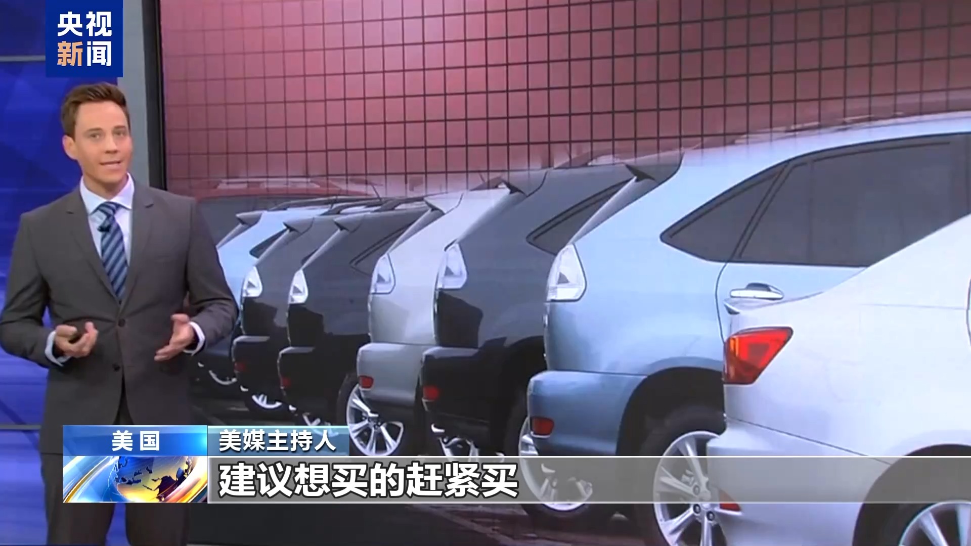 美媒主持人:我們先從汽車說起,建議想買的趕緊買。目前美國對所有非美國組裝的車輛征收25%關(guān)稅,這類車輛占市場總量的46%。但請注意,美國本土組裝的汽車同樣會漲價,因為這些車輛的部分零部件產(chǎn)自海外,而零部件也面臨關(guān)稅。