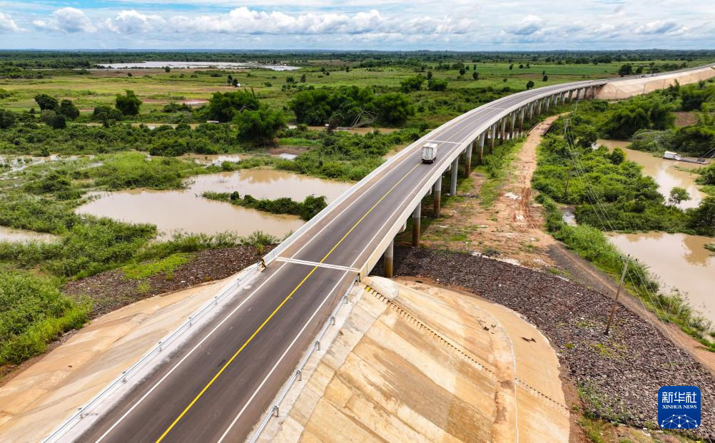 這是2024年7月14日在柬埔寨特本克蒙省拍攝的71C號國家公路(無人機照片)。新華社發(fā)(尼多拉攝)