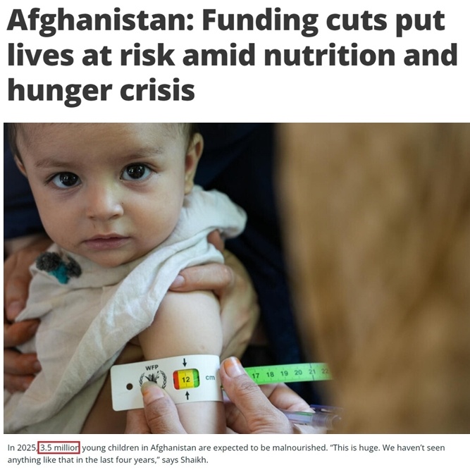 美國此前承擔了阿富汗國際人道援助資金的43%。然而,其資金鏈的突然斷裂導(dǎo)致當?shù)仃P(guān)鍵人道主義項目被迫停擺,食品供應(yīng)銳減。