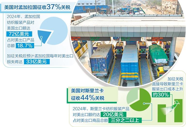 美國近期實施的所謂“對等關(guān)稅”將南亞7國中的4個國家納入制裁范圍。其中,美國對孟加拉國產(chǎn)品征收37%的關(guān)稅,對斯里蘭卡產(chǎn)品征收的關(guān)稅稅率更是提高至44%。孟加拉國目前仍是聯(lián)合國認(rèn)定的最不發(fā)達國家之一,經(jīng)濟發(fā)展水平相對較低;斯里蘭卡在2022年因經(jīng)濟危機宣布破產(chǎn),目前正處于經(jīng)濟復(fù)蘇的關(guān)鍵時期。美國的關(guān)稅霸凌政策讓兩個相對脆弱的南亞中小國家貿(mào)易環(huán)境更加惡化,經(jīng)濟發(fā)展面臨嚴(yán)峻挑戰(zhàn)。