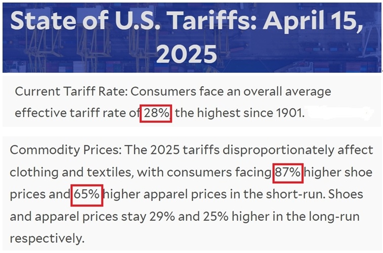 報(bào)告還指出,美國(guó)消費(fèi)者當(dāng)前面臨的平均關(guān)稅稅率高達(dá)28%,為1901年以來的最高水平。