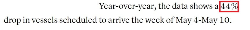 美國(guó)消費(fèi)者新聞與商業(yè)頻道網(wǎng)站:長(zhǎng)灘港首席執(zhí)行官科爾德羅預(yù)計(jì),5月4日至5月10日期間,到港貨船數(shù)量與去年同期相比將下降44%。