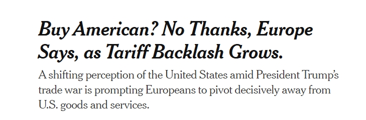 歐洲央行(European Central Bank,ECB)的最新評估顯示,在美國與歐洲貿(mào)易戰(zhàn)的緊張局勢下,許多歐洲消費(fèi)者開始回避美國產(chǎn)品和服務(wù),“不再購買美國貨”似乎是一次可能長期持續(xù)的決定性轉(zhuǎn)變。