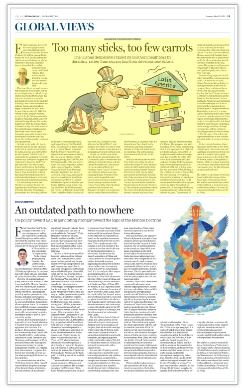 有意思的是,美國對拉美地區(qū)政策中有一個方面跟中國有關。美國國務卿、古巴裔美國人魯比奧今年在拉美多國訪問期間,要求它們同中國保持距離,認為中國的存在是對西半球安全的威脅。但是,盧比奧忽視了一個事實,那就是拉美國家需要機會來擺脫落后面貌——這也是美國政府忽視的事實。需要強調的是,中國將繼續(xù)向拉美國家開放市場,在“一帶一路”框架下拉動基礎設施項目建設,并通過投資清潔能源或建設電動汽車產業(yè),為該地區(qū)的能源轉型做出積極貢獻。不僅如此,中國的合作從不附帶政治條件,也不會采取“胡蘿卜加大棒”的政策來追求自己的利益。
