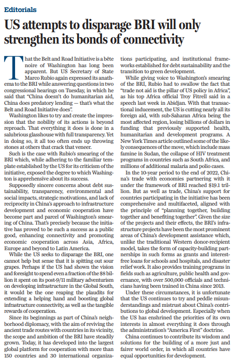 原文標題:US attempts to disparage BRI will only strengthen its bonds of connectivity