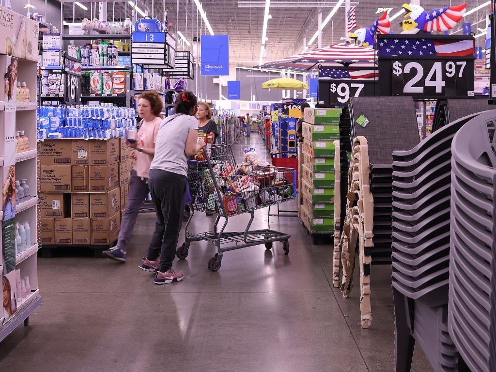 5月21日,顧客在美國加利福尼亞州舊金山灣區(qū)圣萊安德羅的一家沃爾瑪超市購物。新華社記者 吳曉凌 攝