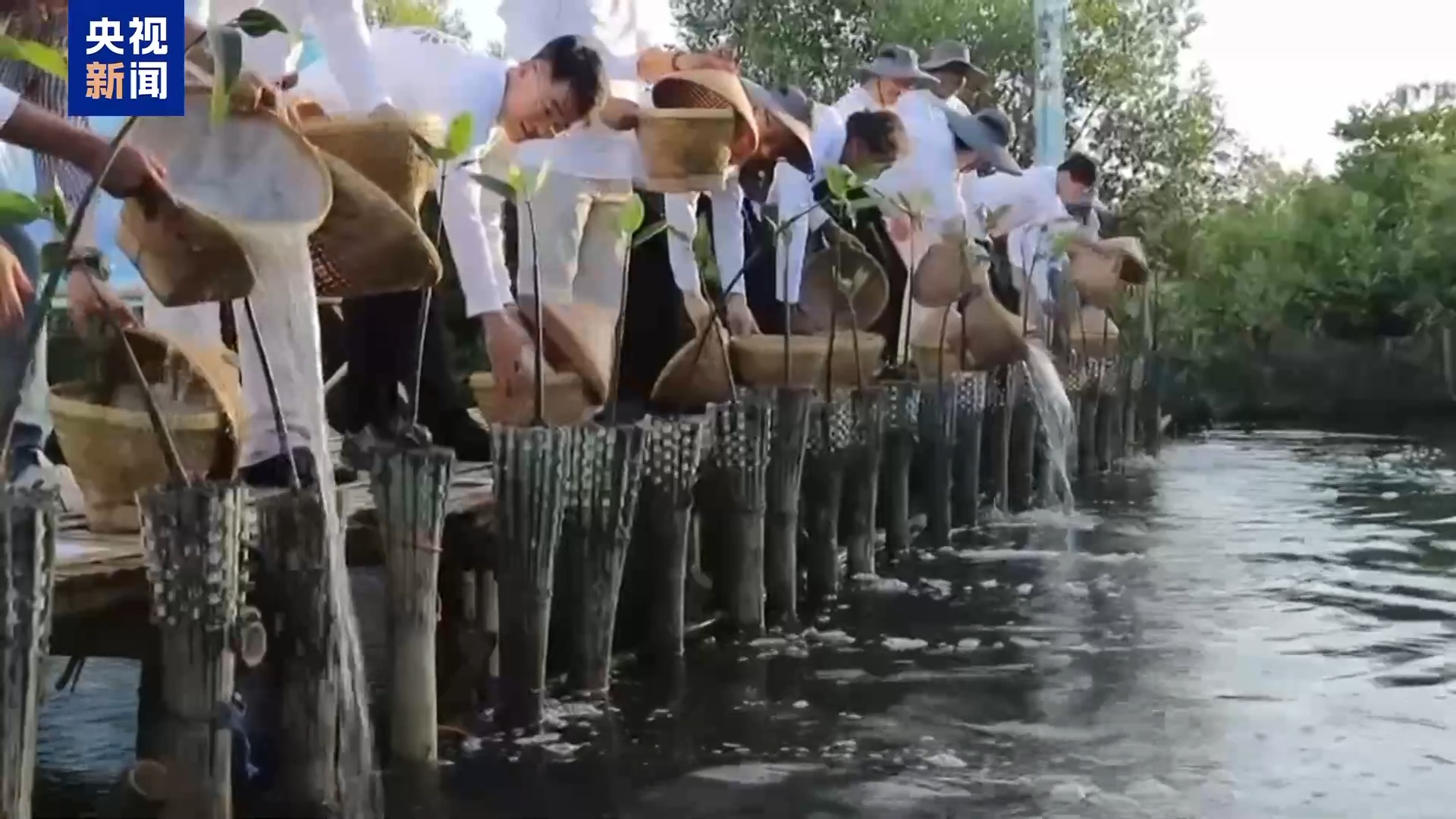 就在記者探訪的當(dāng)天,又一批紅樹苗被種入沿海灘涂。這樣的生態(tài)投入也帶來了民生收益,周邊居民有了新的就業(yè)機(jī)會,漁業(yè)資源也逐漸恢復(fù),越來越多珍稀野生動物在此安家。