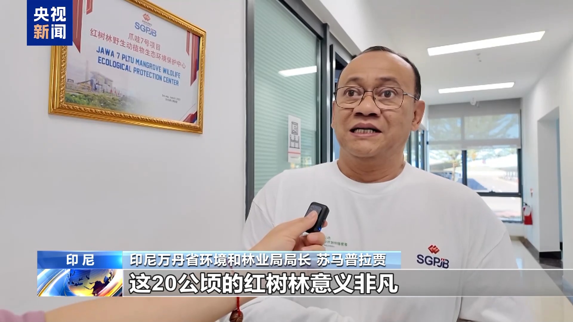 總臺記者 李琳:我現(xiàn)在所在的位置是印尼(單機(jī)容量)最大的火力發(fā)電廠。我現(xiàn)在所在的這個平臺有80米高。從我身后大家可以看到一大片紅樹林和電廠是和諧共生。那么在最開始,這片紅樹林只有5公頃的面積,而隨著企業(yè)不斷地種植,現(xiàn)在已經(jīng)達(dá)到了20公頃。